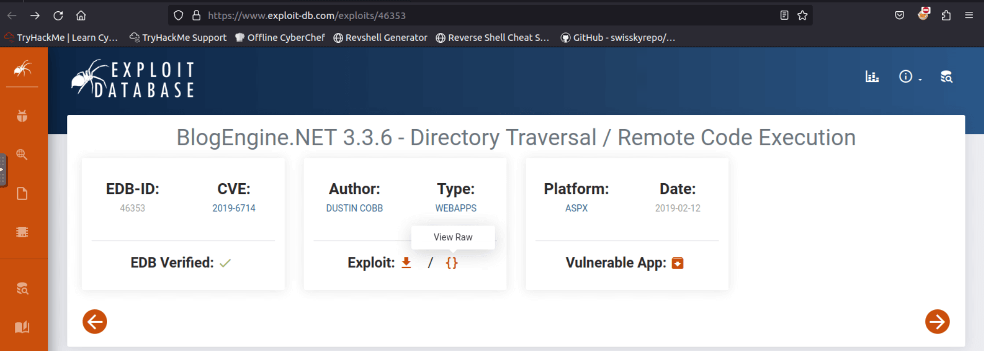 Here you can find the version of the web application, with this information you will look for an exising exploit.