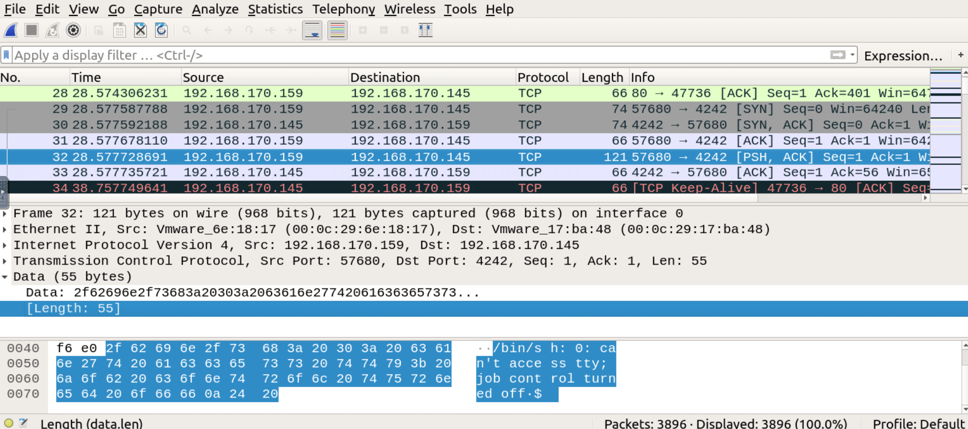 Since the reverse shell connection is not encrypted you are able to read all the commands that were sent by the attacker, to do so just click on the packet and follow the TCP stream.